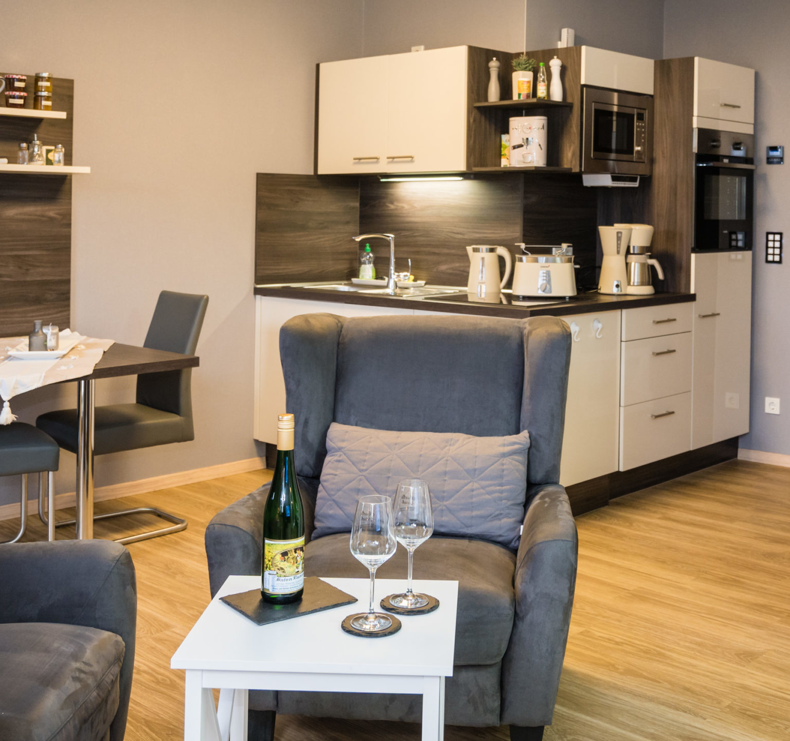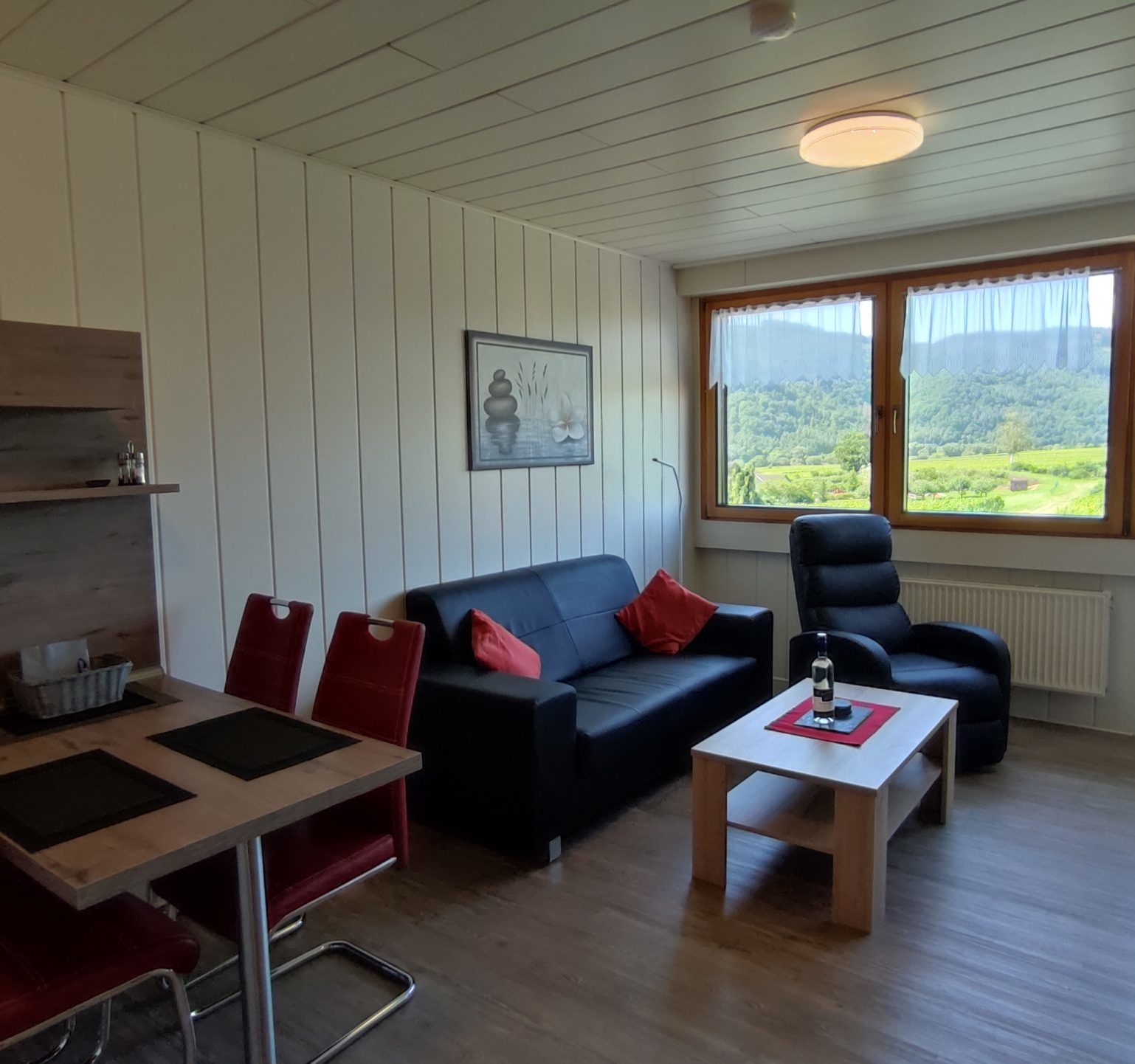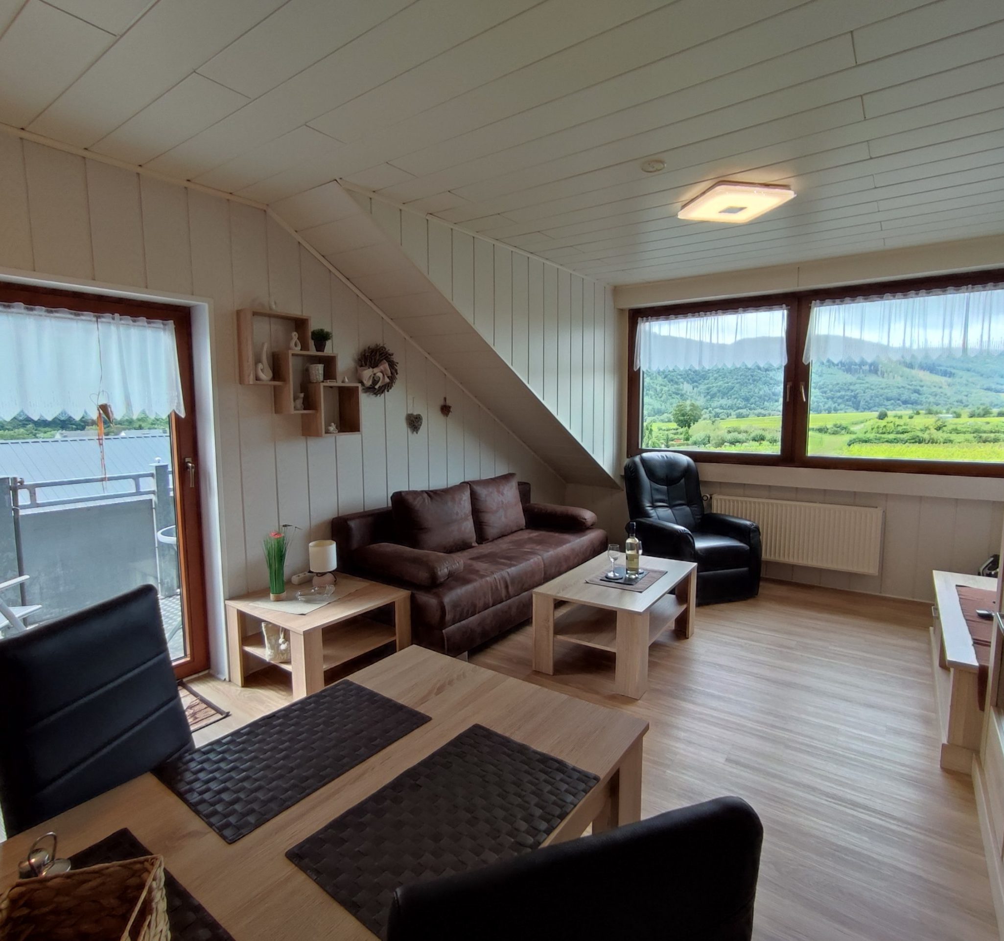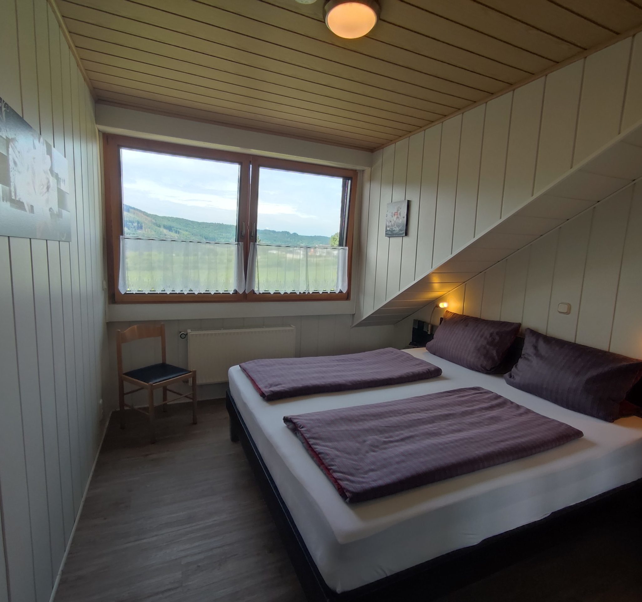 Unser ruhig gelegenes Haus hat drei Ferienwohnungen und liegt am Ortsrand von Kröv mit direktem Blick in das Moseltal und die Weinberge. Zum Ortskern sind es 10 Minuten Fußweg.